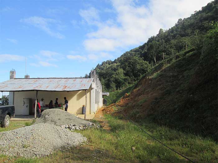 Huauchinango, Pue.- Estudiantes indígenas del bachillerato Octavio Paz de Ahuacatlán en Huauchinango toman sus clases en un edificio en pésimas condiciones. Desde el año 2007 reclaman la construcción de un muro que detenga el deslave del bordo donde está asentado y se tomen medidas para aminorar los riesgos.