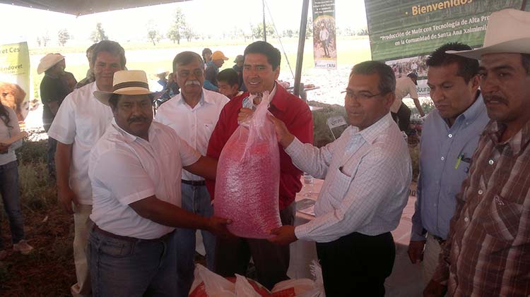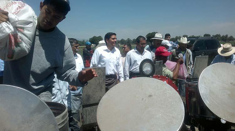 En el acto de arranque de la siembra, en el que estuvieron presentes miembros del cabildo y especialistas del Colegio de Postgraduados, se aplican mecanización, semillas mejoradas, abonos e insumos biológicos, que el alcalde entregó también en este acto a los productores.