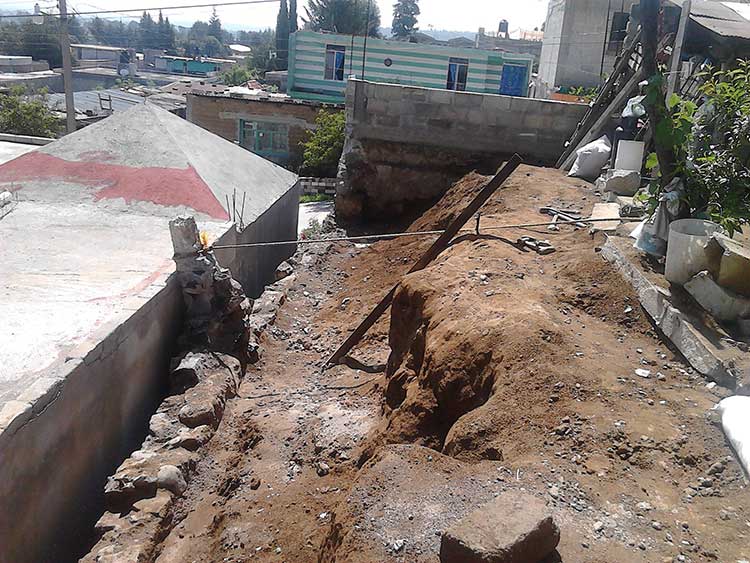 Tras un recorrido efectuado por municipiospuebla.com.mx, fue posible constatar que la lluvia reblandeció la tierra la cual amenaza con caer sobre las viviendas. Algunas ya presentan mamposteo para protección en caso de un derrumbe.