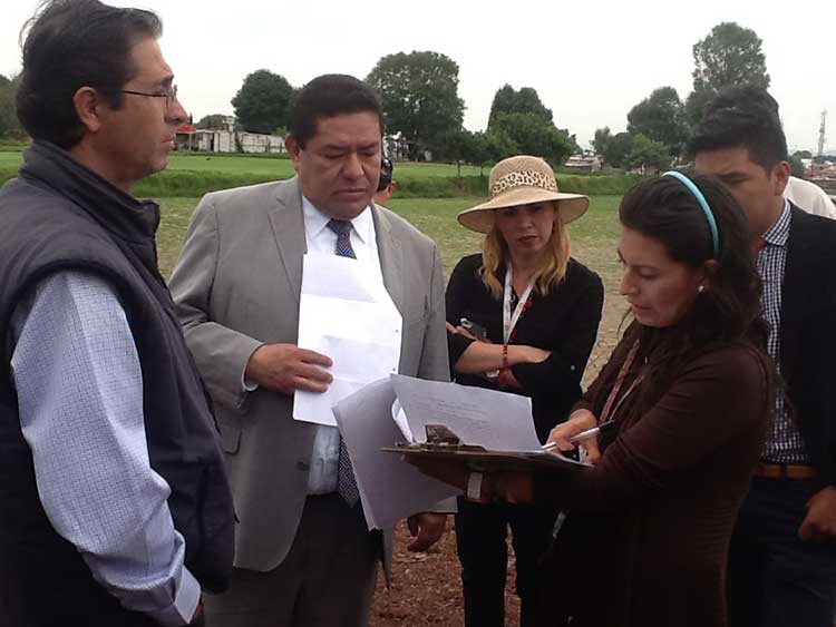 El auto de verificación comenzó hasta las 4:00 de la tarde, los funcionarios del ayuntamiento encabezados por Jesús Morales Garduño, consejero jurídico -y esposo de la síndico municipal, Esperanza Estela Chilaca- arribaron al lugar con más de hora y media de retraso.