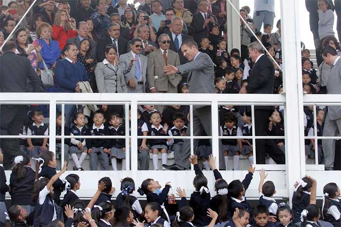 Sin embargo, unos 20 minutos antes de que llegara el gobernador al monumento a los Niños Héroes de Chapultepec fueron retirados de la mesa de honor los distintivos de los personajes citados.