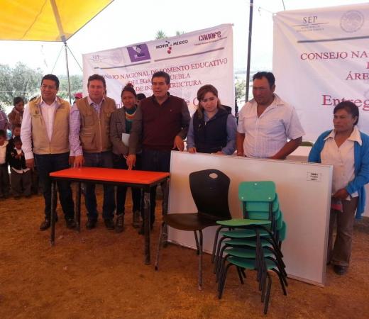 Edil de Tepeaca entrega obras educativas al CONAFE