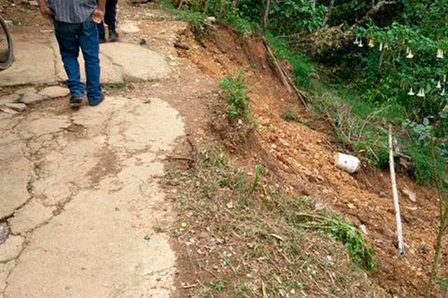 Huauchinango, Pue.- Una comunidad parcialmente incomunicada, la cerca perimetral de una escuela rota y el patio de una casa fracturado, es el saldo que dejaron las lluvias el fin de semana en la zona rural de Huauchinango, según reportes del personal de la Unidad Municipal de Protección Civil.