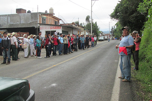 Tlaola, Pue.- Minutos antes del mediodía de este miércoles, un contingente de vecinos de Tlaola del Movimiento Antorchista bloquearon la carretera interrserrana, en demanda del cumplimiento de 16 obras que tienen que ver con la compra de terrenos para escuelas, el mejoramiento de accesos y entrega de apoyos a la cultura.