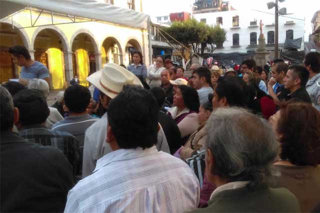 Huauchinango, Pue.- Decenas de ciudadanos inconformes por los constantes y cíclicos apagones, se reunieron en el zócalo de Huauchinango para iniciar un movimiento de resistencia ante lo que calificaron como mal servicio de la Comisión Federal de Electricidad (CFE) y anticiparon que diseñarán una estrategia de defensa.