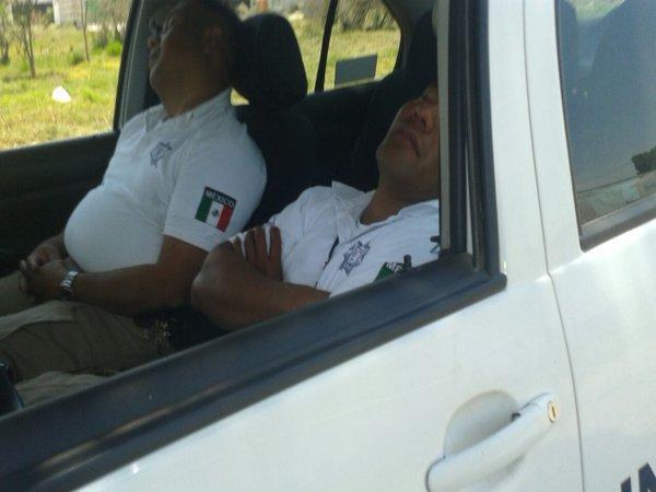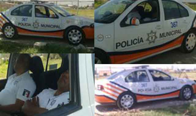 En ellas se puede ver a dos agentes que toman la siesta dentro de la patrulla 367 de la Policía Municipal con logotipos del Ayuntamiento de San Pedro Cholula.