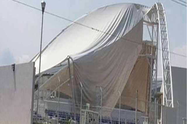 Izúcar de Matamoros, Pue.- Ráfagas de viento desprendieron la lona que tiene por techo el Centro Comunitario de Izúcar de Matamoros, inmueble que fue inaugurado el 8 de enero de 2016 por el gobernador de Puebla, Rafael Moreno Valle, y el edil, Manuel Madero González.