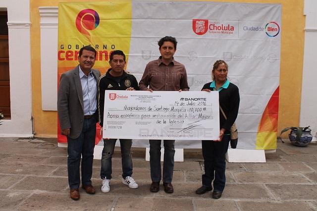 Por otra parte también durante la jornada de Gobierno Cercano además del reconocimiento al equipo de natación Tlachtli el presidente de San Pedro Cholula, José Juan Espinosa Torres, entregó un apoyo económico al mayordomo del Barrio de Santiago Mixquitla para obras de rehabilitación en el templo de la zona.