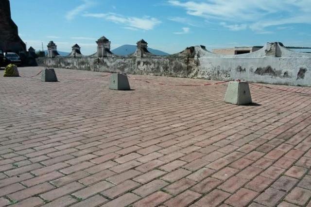Se hunde una de las bardas del ex convento de San Francisco en Atlixco