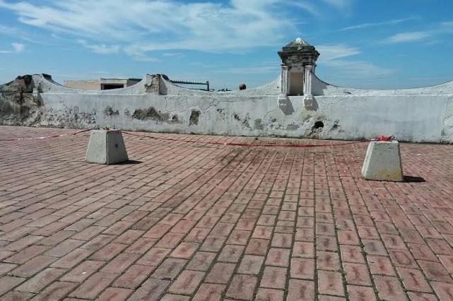 Atlixco, Pue.- La barda sur de la explanada del ex convento de San Francisco tuvo un ligero hundimiento, por lo que la zona se acordonó para evitar algún accidente, informó el párroco Lucio Sánchez del Razo.