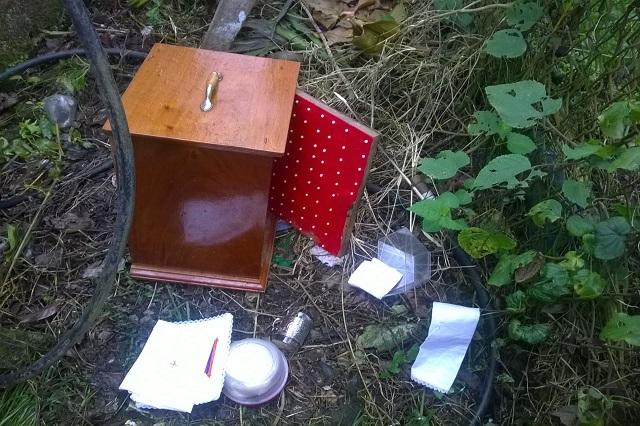 Un habitante halló a un costado de la capilla el nicho donde se guardaban los objetos sagrados y un pequeño baúl en el que se guardaban las limosnas. Se calcula que eran cerca de 14 mil pesos.
