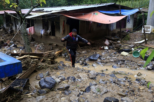 En Huauchinango la gente tuvo que dejar sus hogares ante el riesgo de más deslaves. Muchos debieron salir a pie.