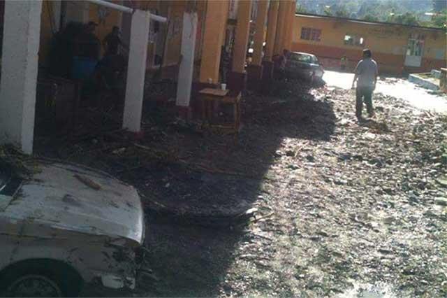 En Tlaola se puede observar como una gran cantidad de lodo invadió parte del palacio municipal.