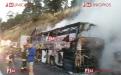 Tras el impacto, se incendiaron tanto la caja seca del tráiler como el autobús de la línea Atah, unidad que a su vez salió del camino. El autobús de la línea ADO sufrió menores daños.