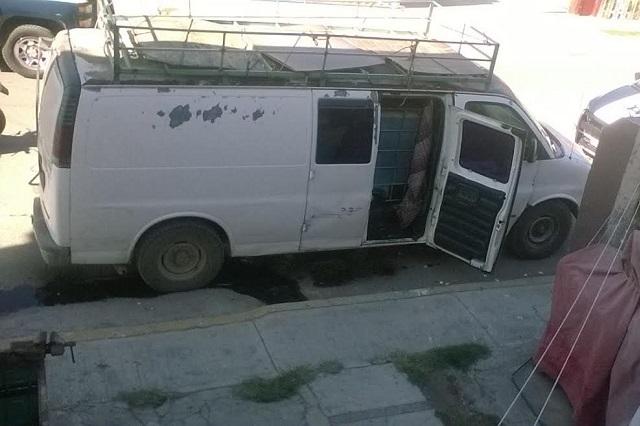 Elementos de la Policía Municipal descubrieron una camioneta tipo van, color blanco, y placas del Estado de México.