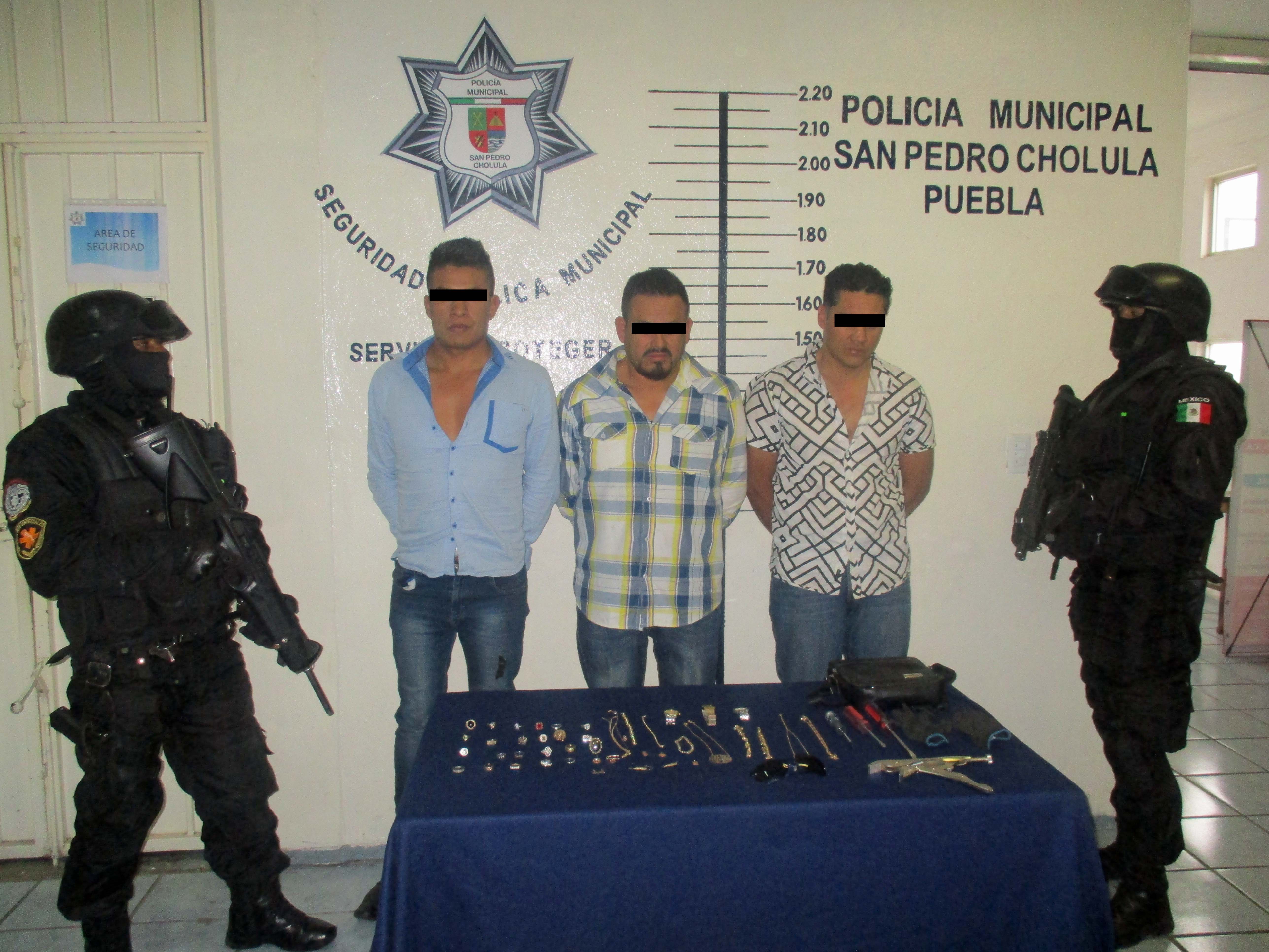 Elementos de la Policía Municipal de San Pedro Cholula detuvieron a tres sujetos en flagrancia cuando presuntamente robaban al interior de un domicilio en la zona de Zerezotla.