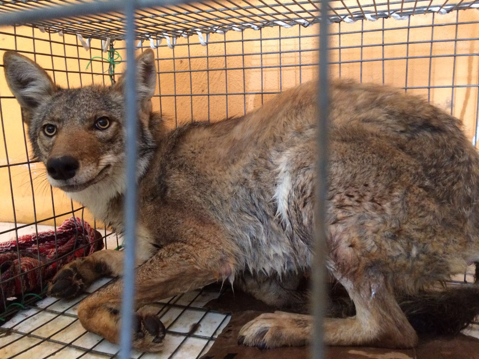 También se reportó el caso de un coyote hembra que huyó del fuego y fue rescatado por una familia.