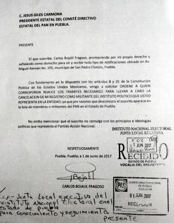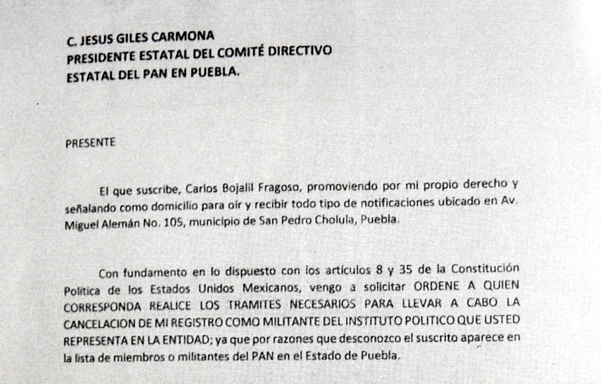 Por separado, María de los Ángeles Sánchez, María Carmelita Reyes y Carlos Bojalil, solicitaron al presidente del Comité Directivo Estatal del PAN, Jesús Giles Carmona, cancelar su registro porque nunca autorizaron su incorporación al listado de militantes, además de no comulgar con los principios e ideologías del blanquiazul.