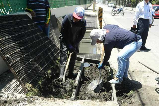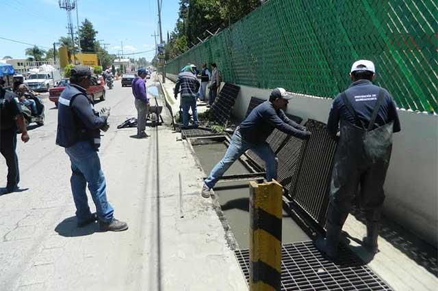Se realizaron trabajos de limpieza y desazolve de la red de drenaje sanitario y pluvial en 12 alcantarillas, las cuales se encuentran en la Avenida México-Puebla y en el puente 20 de Noviembre a la altura de la vía.