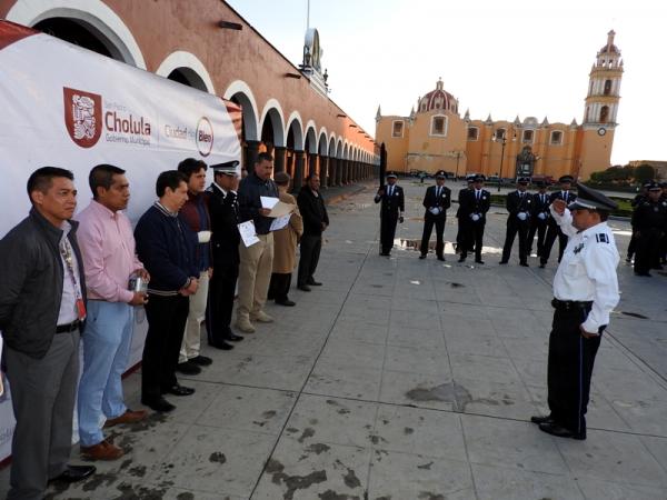 Esta mañana, el alcalde José Juan Espinosa Torres entregó reconocimientos y uniformes a elementos de la Comisaría de Seguridad Pública y guardias ciudadanos acompañado por el encargado del área de Protección Patrimonial de la cadena de tiendas de autoservicio Oxxo, Guillermo Chávez Gutiérrez, quien resaltó que los elementos han demostrado capacidad de reacción para proteger las sucursales en este municipio.