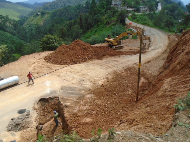 Escarbaron una ladera, aparentemente para ampliar el tramo, con la tierra que sacaron rellenaron el hundimiento y, al parecer colocarán una tubería que permita drenar el agua que mana desde un venero que está bajo el asfalto y que –según pobladores-, es la causa del hundimiento.