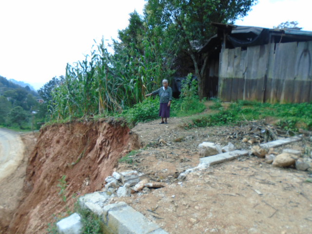 Huauchinango, Pue.- Para reparar el hundimiento de un tramo de la carretera Michuca-Naupan en el municipio de Huauchinango –que había sido reconstruido hace 5 meses por los daños que causó la tormenta Earl-, empleados de una constructora llamada “Tecnológicos de México” escarbaron una ladera de propiedad privada y dejaron en riesgo la vivienda de una mujer de más de 80 años.