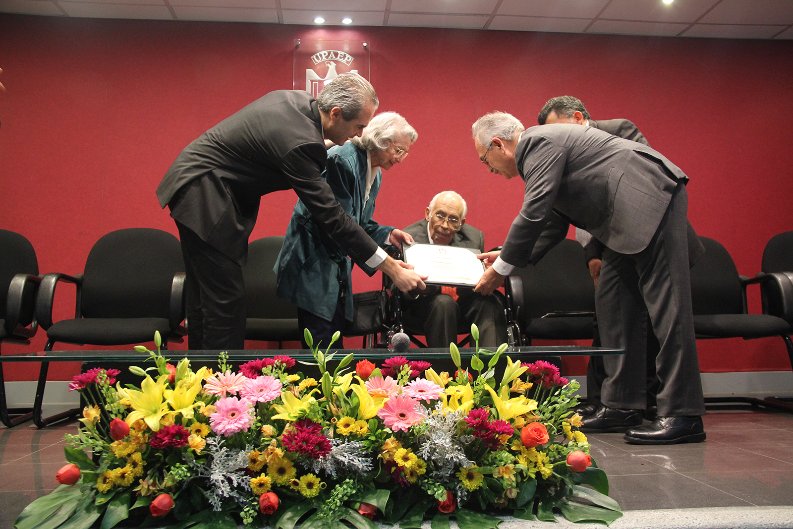 El Grado de Profesor Emérito fue entregado a Don Manuel Díaz Cid por el Lic. Juan José Rodríguez Posada, Presidente de la Junta de Gobierno y por el Dr. Emilio José Baños Ardavín, rector de la UPAEP.