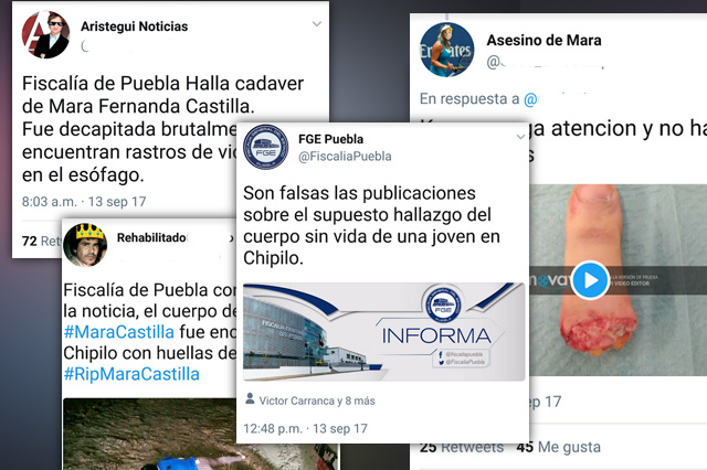 Asimismo desde este miércoles comenzaron a circular mensajes de cuentas apócrifas que señalaban que Mara había sido localizada sin vida, otros más explícitos publicaban fotos de mujeres e incluso señalaban que había sido decapitada y abandonada en Chipilo.