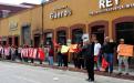 San Pedro Cholula, Pue.- Una “cadena humana” afuera del Palacio Municipal de San Pedro Cholula formaron este medio día integrantes de Antorcha Campesina para exigir al alcalde José Juan Espinosa Torres, autorizar la construcción de una cancha de fútbol rápido en la unidad habitacional Arcoíris.