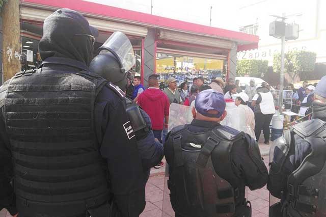 Ahora Policía de Tehuacán, desaloja a comerciantes pese a mostrar amparo