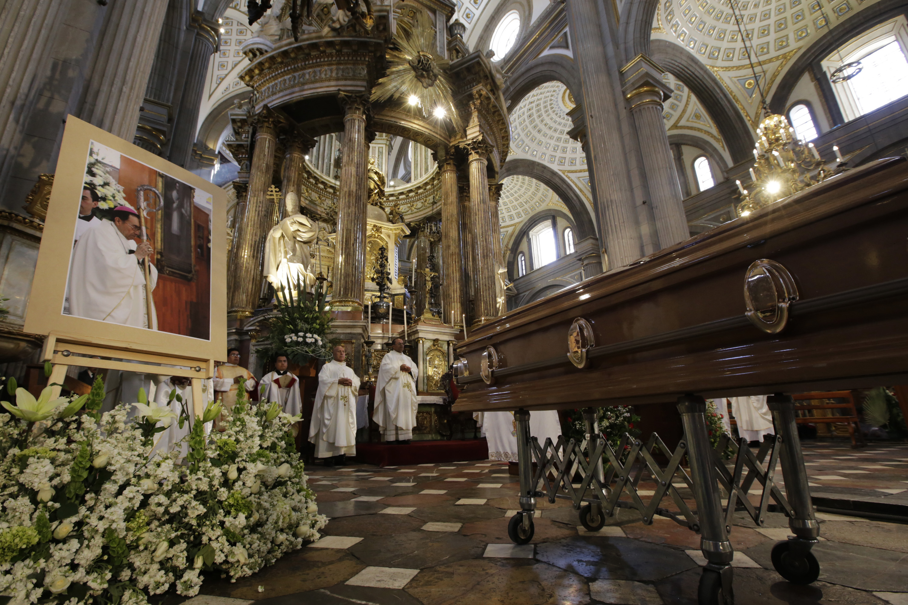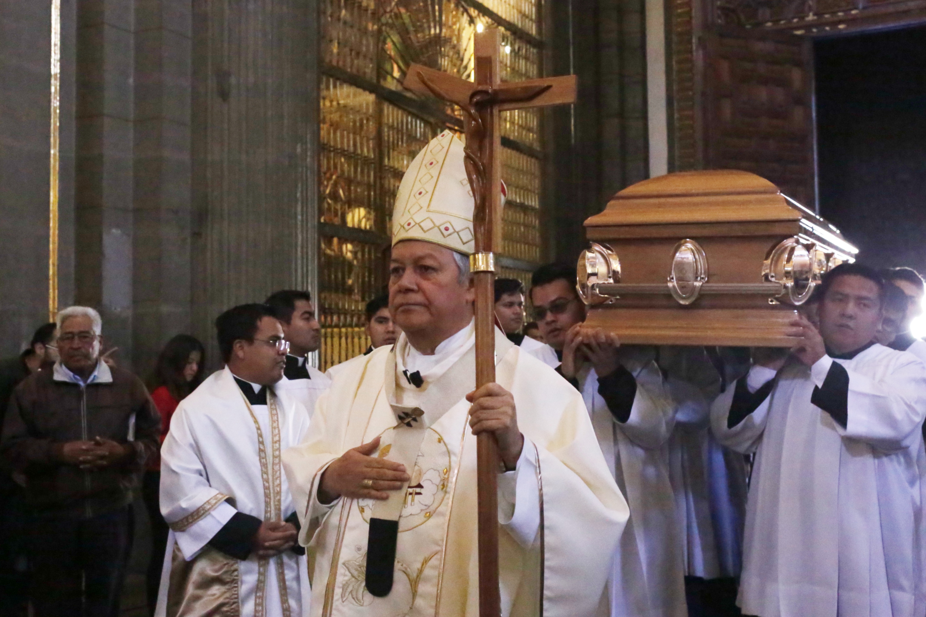 El cuerpo del arzobispo de Puebla, Rosendo Huesca Pacheco, se encuentra desde las 10:00 horas de este domingo en el Altar de los Reyes de la Catedral para que los feligreses puedan despedirse de él, informó la arquidiócesis.