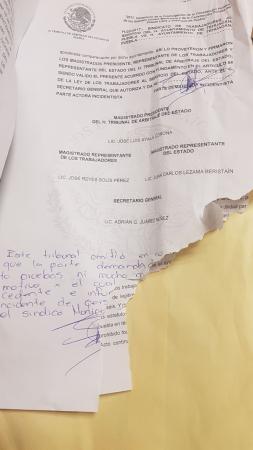 A través de la Dirección de Comunicación, el presente Ayuntamiento hace público y exhibe lo ocurrido la tarde del pasado 27 de noviembre de 2017 en el Tribunal de Arbitraje del Estado de Puebla, donde mediante material gráfico se demuestra la imparcialidad de esa instancia, en donde se ve la privación ilegal de la libertad de la directora del área jurídica del gobierno de Tehuacán, Nohemí Quiñones Díaz.