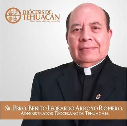 Tehuacán, Pue.- Benito Leobardo Arroyo Romero fue designado administrador de la Diócesis de Tehuacán tras la salida de Rodrigo Aguilar Martínez, quien quedó a cargo de la Diócesis de San Cristóbal de las Casas.