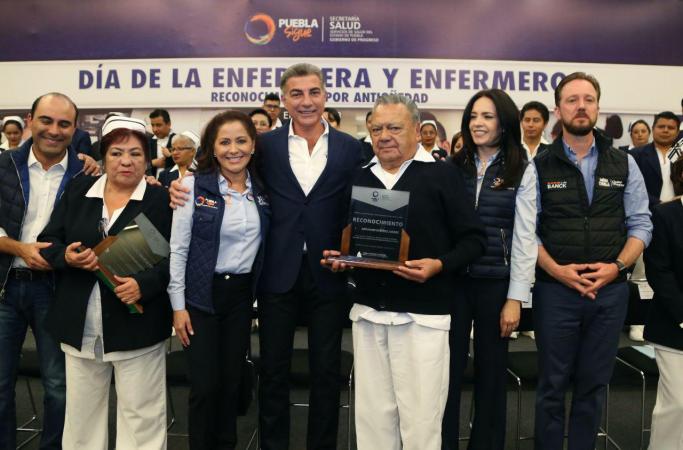El alcalde de Puebla, Luis Banck, celebró el trabajo que Antonio Gali y su esposa Dinorah López de Gali realizan por el bienestar de los poblanos, impulsando mejores servicios de salud, y agradeció a las y los enfermeros su vocación y cariño para cuidar en todo momento a sus pacientes.