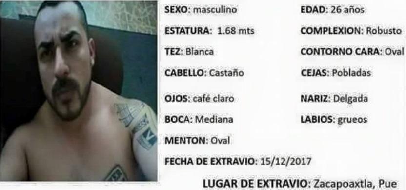 Cualquier información sobre su paradero, comunicarla a la comandancia de policía de Zacapoaxtla.