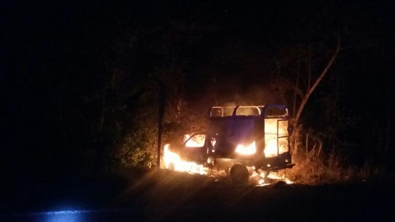 Venustiano Carranza, PUE.- Una camioneta cargada con huevo ardió en llamas y quedó reducida a cenizas en el municipio de Venustiano Carranza, por una presunta falla en el sistema eléctrico.