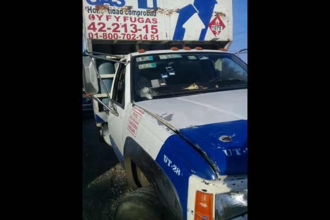 Se trató de la unidad UT-28 de la empresa con razón social "Gas Uno", la cual ha decidido contratar los servicios de la Policía Auxiliar para escoltarlos en sus recorridos, esto ante la ola de asaltos que aquejan los repartidores en sus recorridos dentro de la zona del Triángulo Rojo.