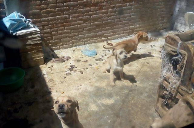 Dentro de la vivienda las autoridades confirmaron que los animales llevaban varios días sin alimentos ni agua y que sólo se guarecían del frío y el calor bajo un sillón viejo y una cobija.