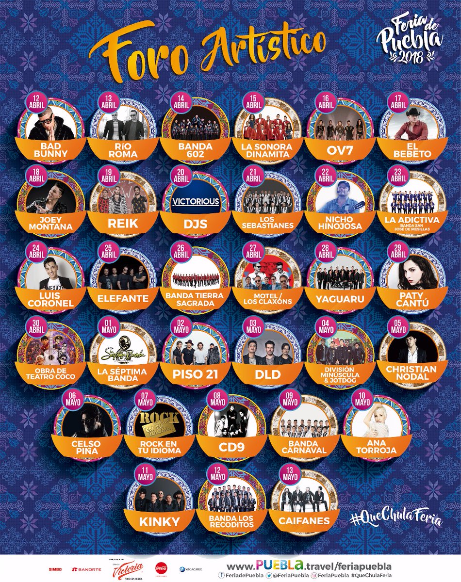 Para que recuerdes el día en que tu artista se presentará en el Foro Artístico, te compartimos la cartelera completa:
