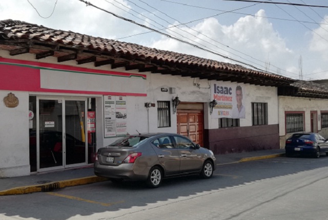 Una parte de la casa donde se decidían los destinos de Huauchinango por la familia priista ya no es de su propiedad. Ahí luce una lona publicitaria del candidato panista a la presidencia municipal, Isaac Martínez como evidencia del grupo que desplazó a los Jiménez y hasta algunos, los absorbió.