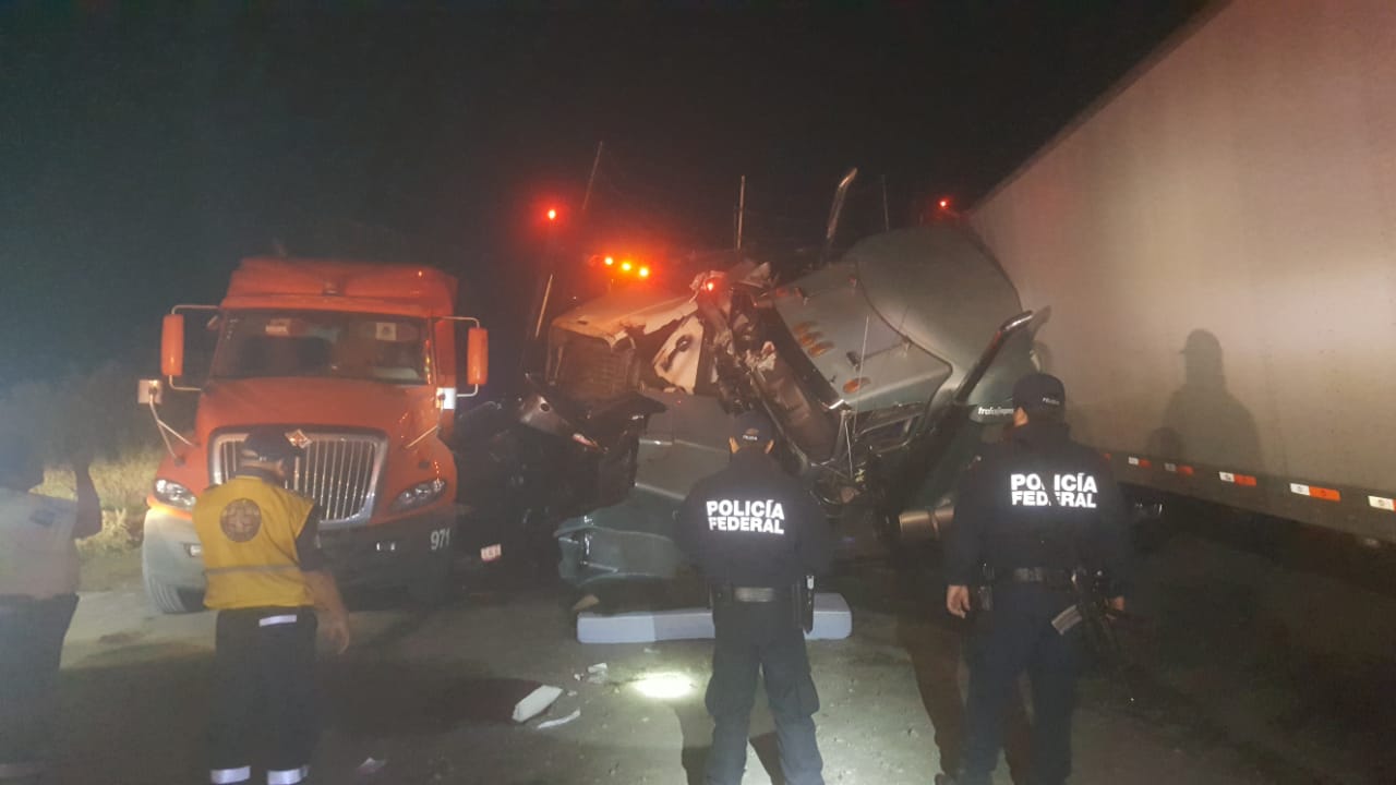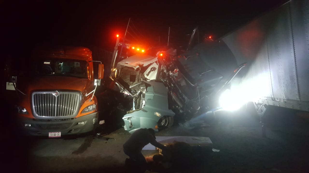 Minutos antes de la media noche, el conductor de un tractocamión marca Kenwoth modelo 2018 con placas de circulación 60AH3F del Servicio Público Federal, perdió el control de la unidad y se impactó contra la banda metálica para luego invadir los carriles contrarios e impactarse con tres vehículos pesados que se encontraban estacionados.