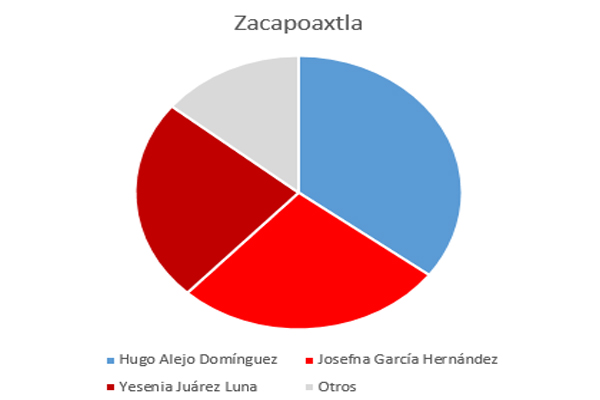 Para el Distrito 4, los resultados no difieren de los otros, la ventaja la obtuvo Huego Alejo Domínguez, abanderado de la coalición Por Puebla al Frente, con un total de 35.2961 por ciento.