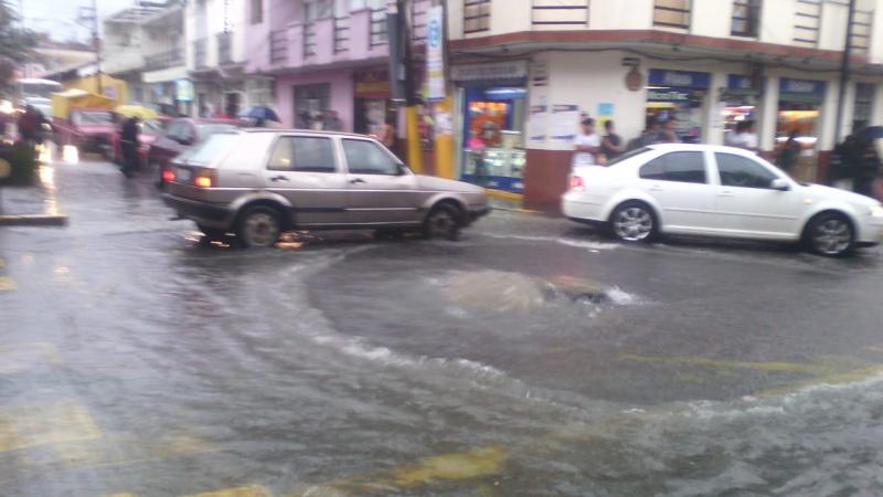 Huauchinango, Pue.- Decenas de negocios y algunas viviendas resultaron afectadas por los encharcamientos causados por una intensa lluvia que desbordó el sistema de alcantarillado del centro de Huauchinango.