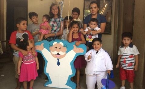 Para cumplir el sueño del niño, su familia le hizo una fiesta sorpresa con la temática del Dr. Simi y le confeccionó parte de la vestimenta, además de que los padres mandaron hacer una piñata del médico y una playera con el estampado de su cara.