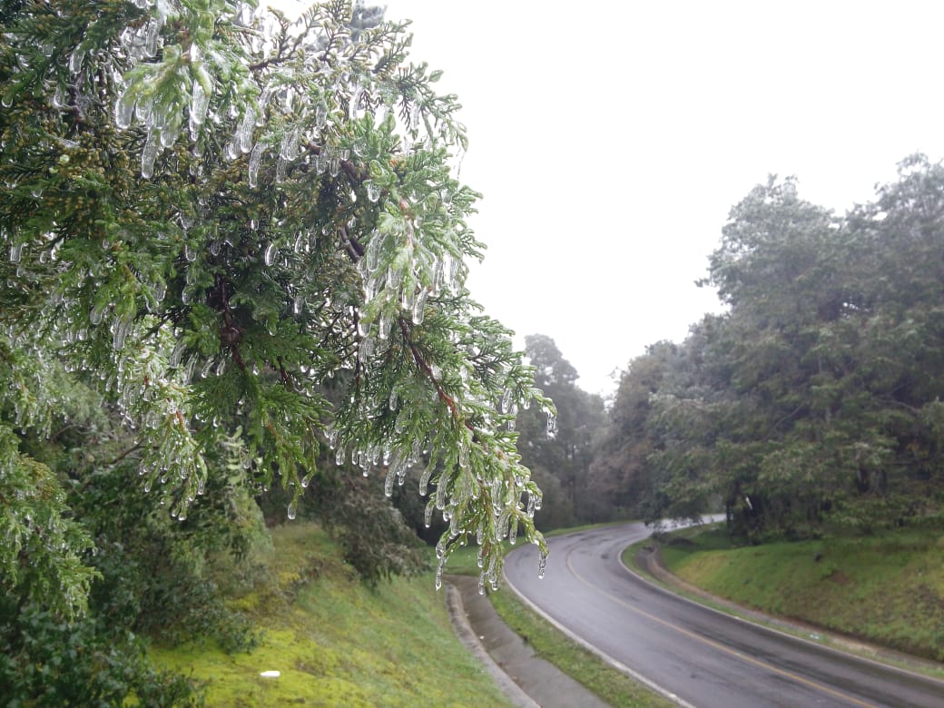 Huauchinango, Pue.- Vehículos dañados, árboles caídos por el peso del hielo, carreteras resbalosas y una caseta de cobro cerrada en la autopista México-Tuxpan, es parte del saldo que dejó el frente frío 10 en parte de la Sierra Norte de Puebla.