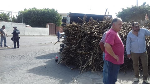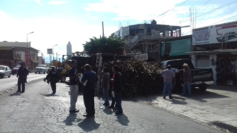 Vuelca camión cargado con 10 t de caña, en Izúcar