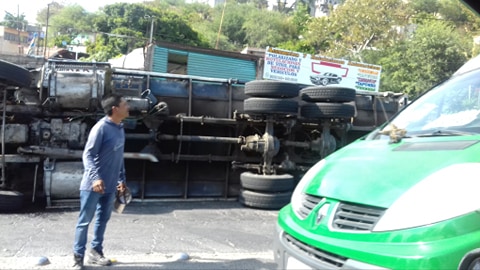 Los hechos ocurrieron a la altura del sitio conocido como “la curva de la gasolinera, cuando la unidad de 10 toneladas se volcó, dejando daños menores a una camioneta que estaba estacionada.