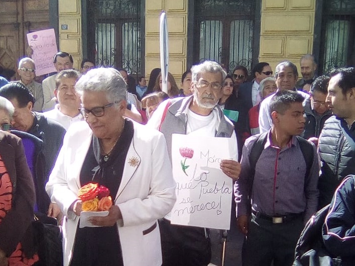 El grupo de apoyo, gritó “Rosi gobernadora” para mostrar su respaldo a la ex diputada federal del PRD y ahora regidora en la capital poblana por el Movimiento de Regeneración Nacional (Morena).