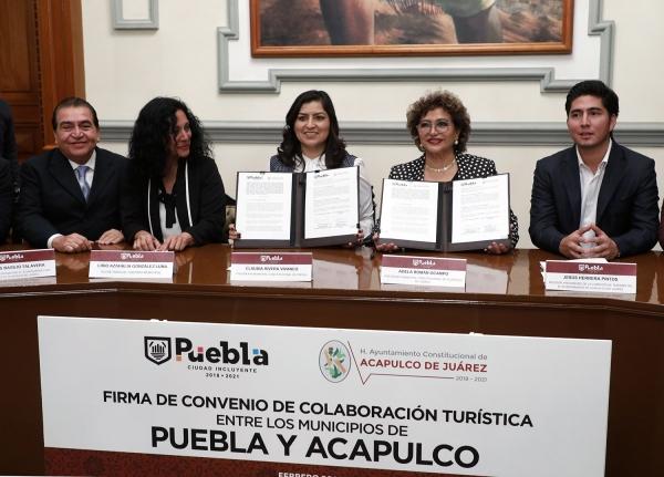 Puebla, Pue.- A fin de estrechar los lazos de colaboración a favor de Puebla y Acapulco de Juárez, la Presidenta Municipal de Puebla, Claudia Rivera Vivanco, y la Alcaldesa de Acapulco, Adela Román Ocampo, firmaron el convenio de colaboración que pretende reforzar el crecimiento turístico y económico de las ciudades.