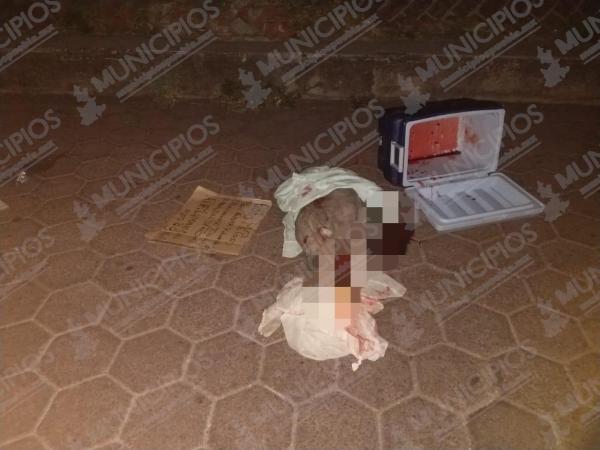 Al lugar se dieron cita elementos de la Policía Municipal, quienes al llegar confirmaron que en el sitio había un torso envuelto en una cobija, donde también estaban las piernas y brazos en otro paquete, mientras que en la hielera estaba la cabeza.